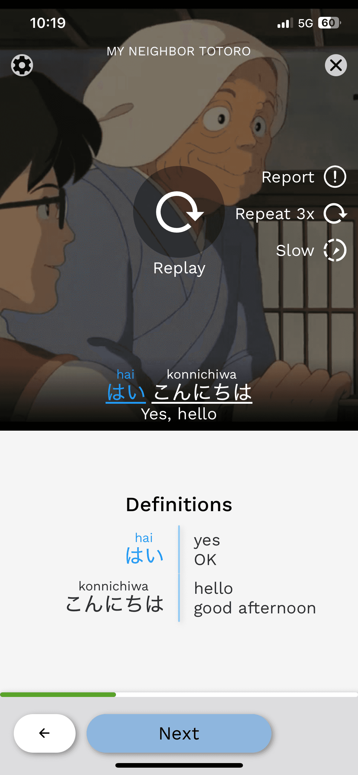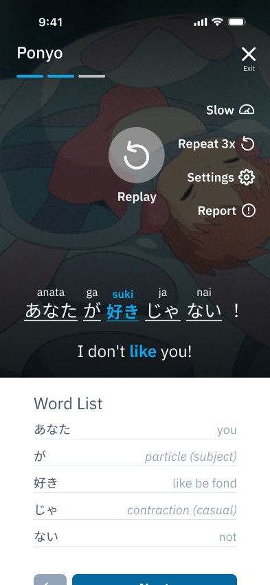 Umi uses real clips from shows and movies to help users learn languages in a fun, engaging, and natural way.