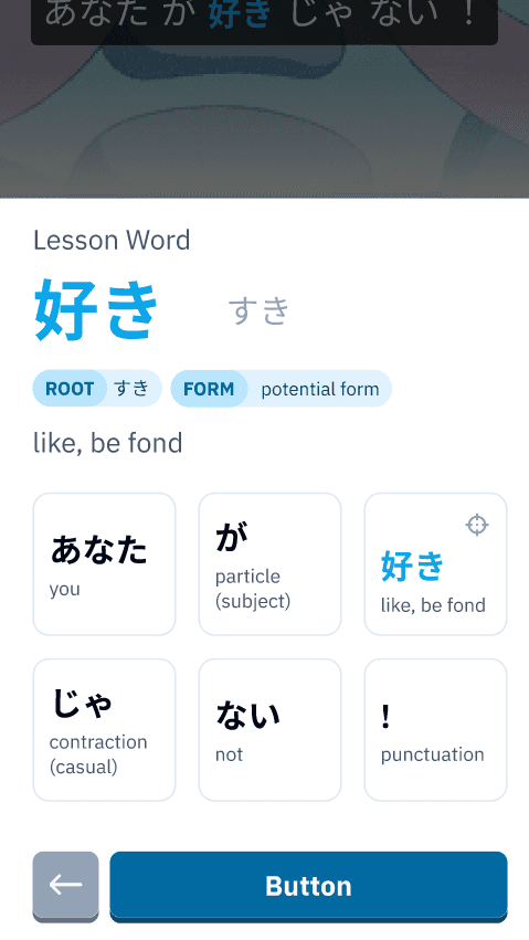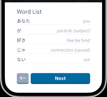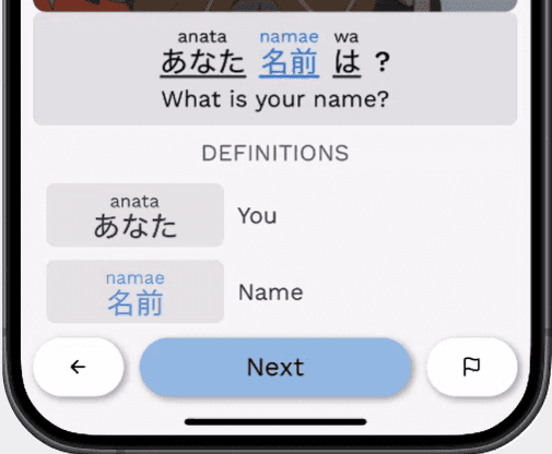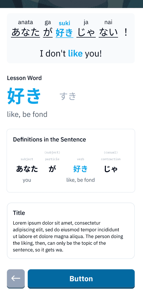 This takeaway was addressed in the word list shown on lessons page. While we explored several iterations (including fun flashcards and detailed sentence breakdowns), we ultimately kept the word list close to its original layout, making only minor visual tweaks to streamline it and reduce confusion for users.